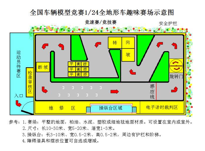 竞赛项目包括:1/18电动房车竞速赛、1/18电动越野车竞速赛、1/24全地形车竞技赛、1/28迷你车竞速赛等等。竞赛设有个人单项、单项团体赛、综合团体赛。